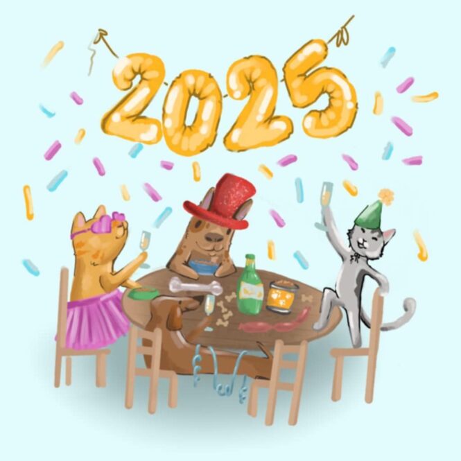 Wszystkim naszym darczyńcom i przyjaciołom życzymy dobrego roku 2025, spełnienia wszystkich marzeń, dużo głasków i pięknych chwil ze zwierzakami!